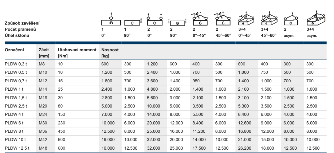 Šroubovatelný vázací bod PLDW s kuličkovým ložiskem, otočný o 360° pod zatížením. Vysoce odolné oko polohovatelné v rozsahu 180°.